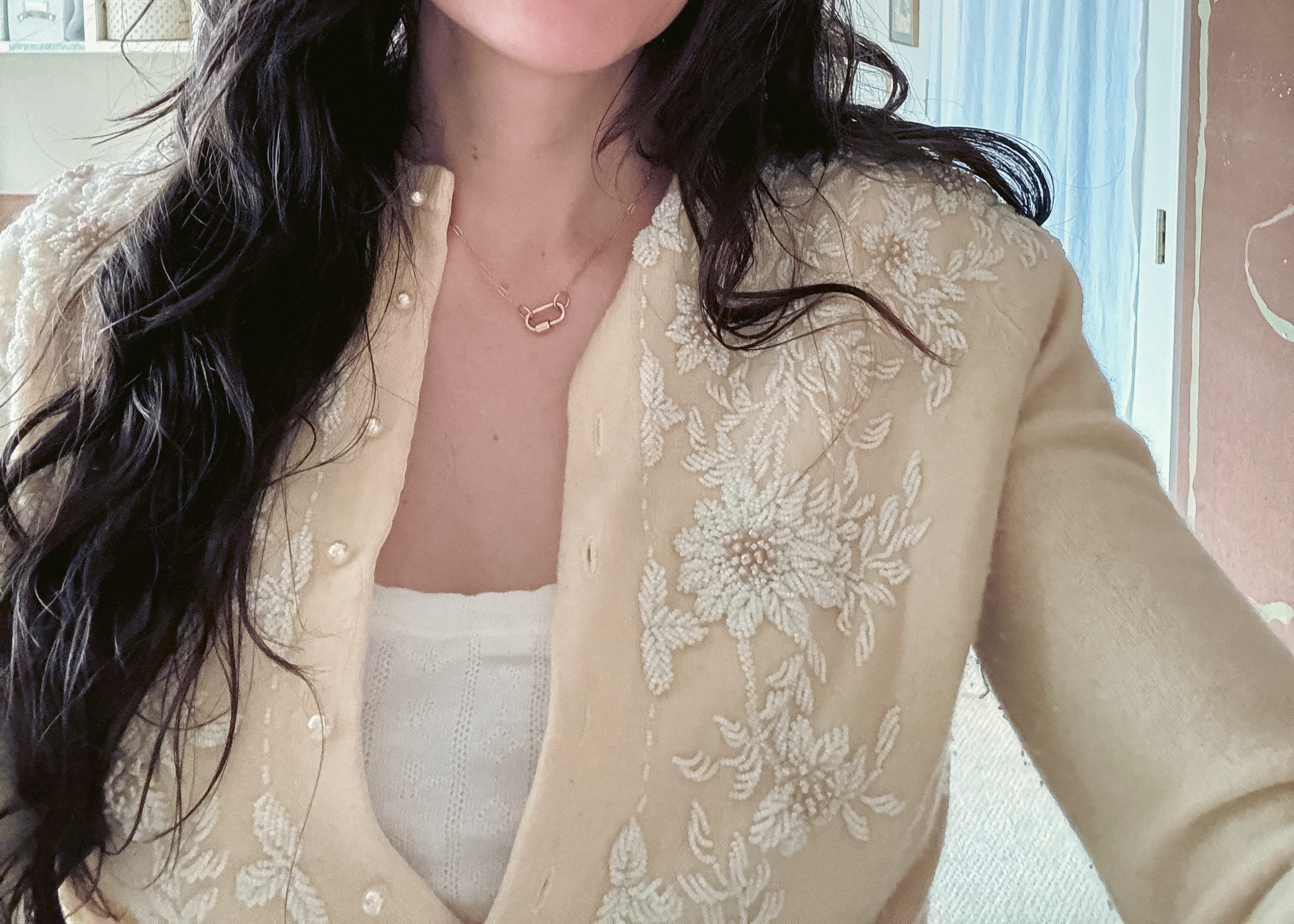 I started digging in my closet and pulled out things I hadn’t worn in years, and combined them in new ways. Yesterday, I found this beautiful vintage beaded cashmere cardigan my grandmother gave me. I wore it with jeans over a handmade t-shirt and congratulated myself on keeping it free of mothholes all these years!