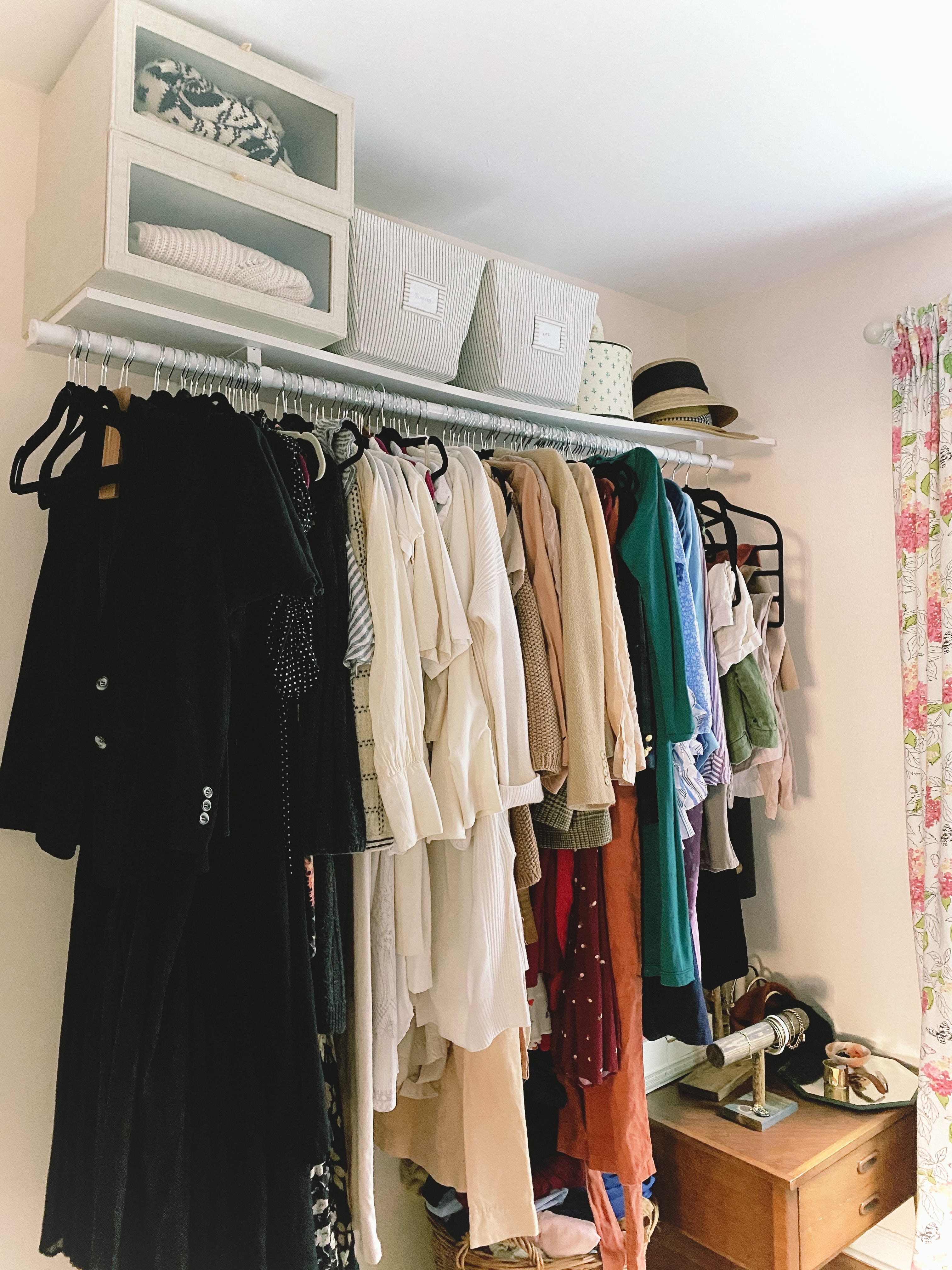 Now, I’ve always love clothes. At the time, I had a good job in a professional field and I’d become accustomed to buying new clothes when I felt like it. Shopping had become something of a pasttime for me. It wasn’t necessarily a problem, but once I stopped, I realized just how much space and energy it took up, and how easy it actually was to stop thinking about it.