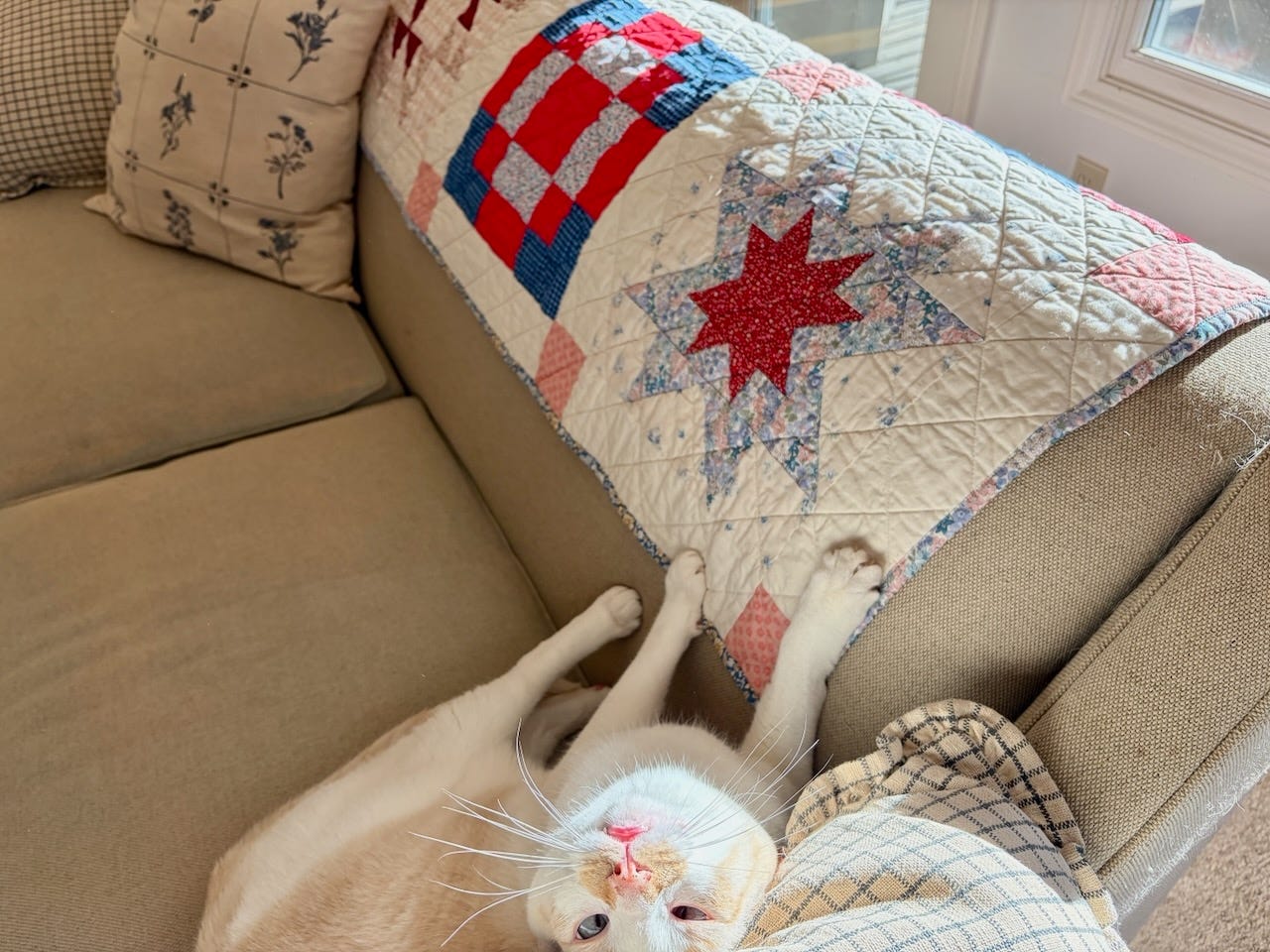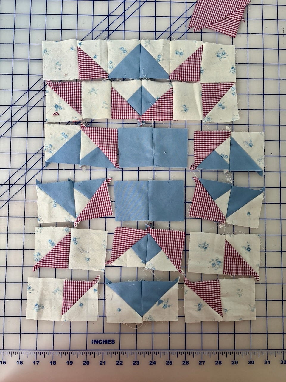 But then I go back to the shed to play with my quilt. Laying out little shapes of color like a small child, I listen to my own intuition. The questions are simple. Do I like this? What about this? What if I tried this one instead? It’s like a game. It matters, but it’s not serious.