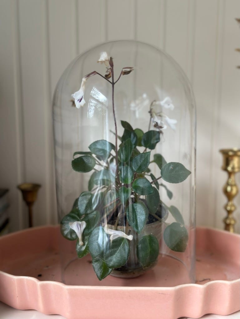 When I first got it, it continually dried out. This is a plant that likes humidity, so I got a little glass cloche to put over it and it’s been happy ever since. Bonus: protected from cats. Get it here.