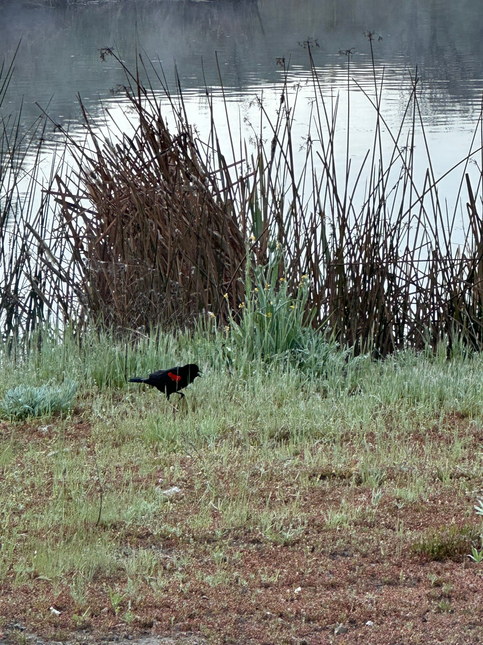 We camped at this lake, where there were these adorable red-winged black birds. They were having lots of fun calling to each other, courting females, and sliding down reeds. It was great evening entertainment.