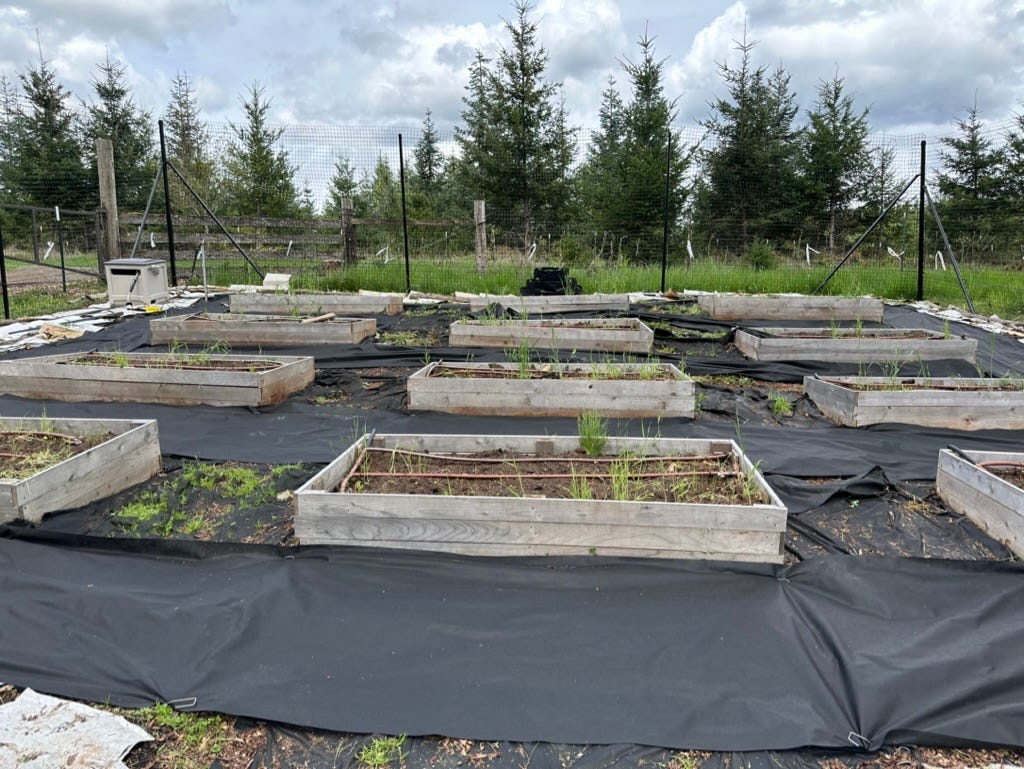 Preparing for several tons of gravel and compost to be delivered this week by laying down more weed barrier and installing edging around all the outer beds. I’ll also be transplanting my seedlings this week. What a crunch.