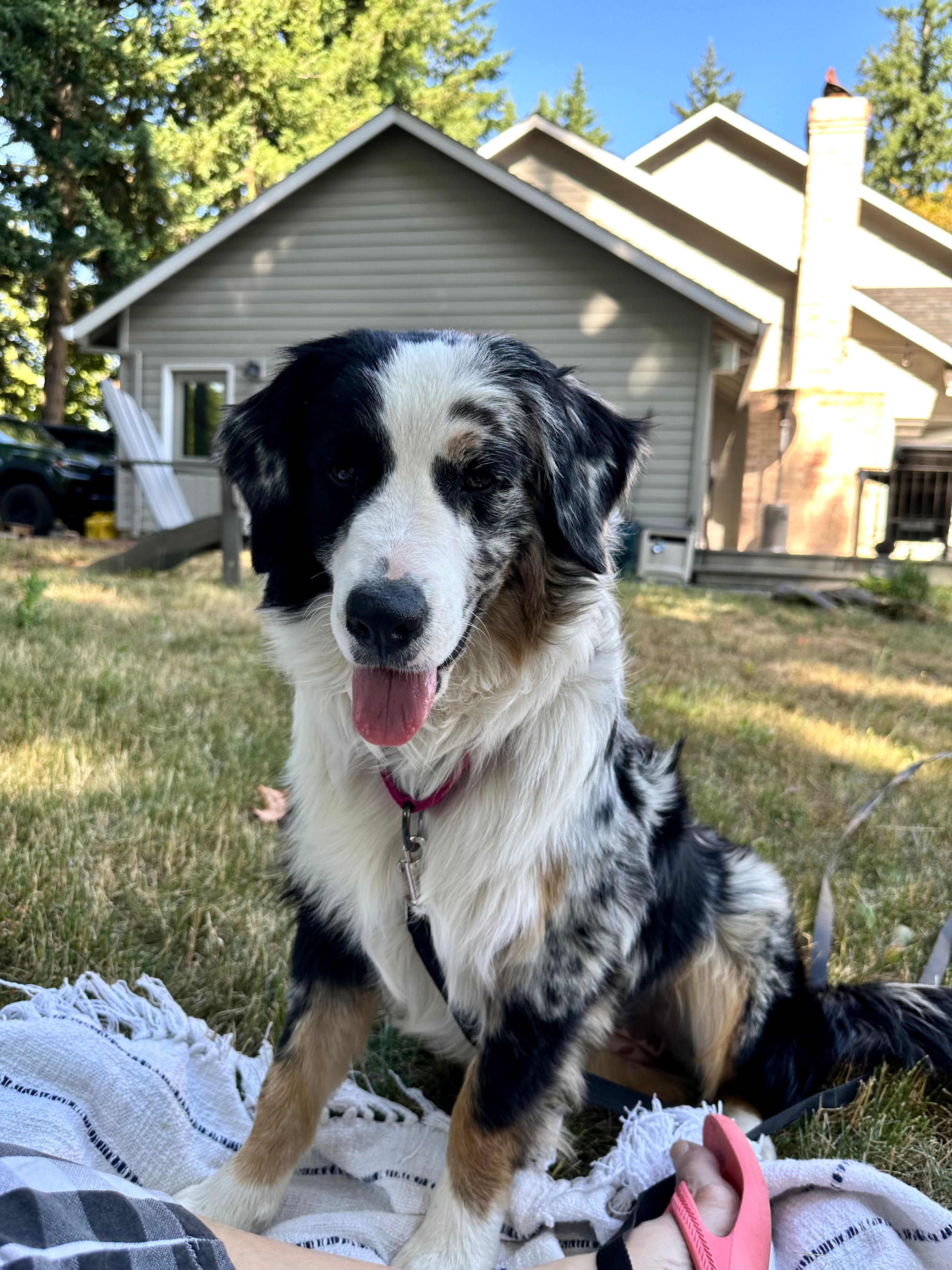 So here she is, the newest member of our family! Lucy is an Australian Shepherd. We don’t know much about her background. She was surrendered to a rescue along with most of her litter and likely came from a backyard breeder of some kind.