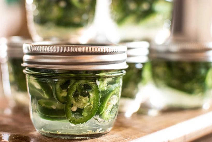 Pickled jalapenos are easy to make and can, or you can make smaller batches for your fridge. These are delicious on eggs or in tacos. I always keep a bag of masa on hand so that I can make homemade tortillas, which can be filled with whatever you have in your fridge or freezer.