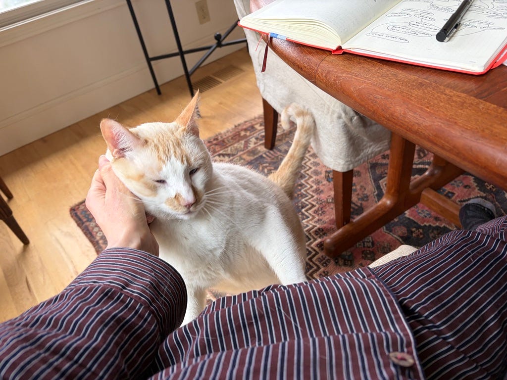 Since then, I’ve created a rule for myself. Whenever a cat jumps in my lap and demands love, I stop whatever I’m doing and give him my full attention for at least one minute.