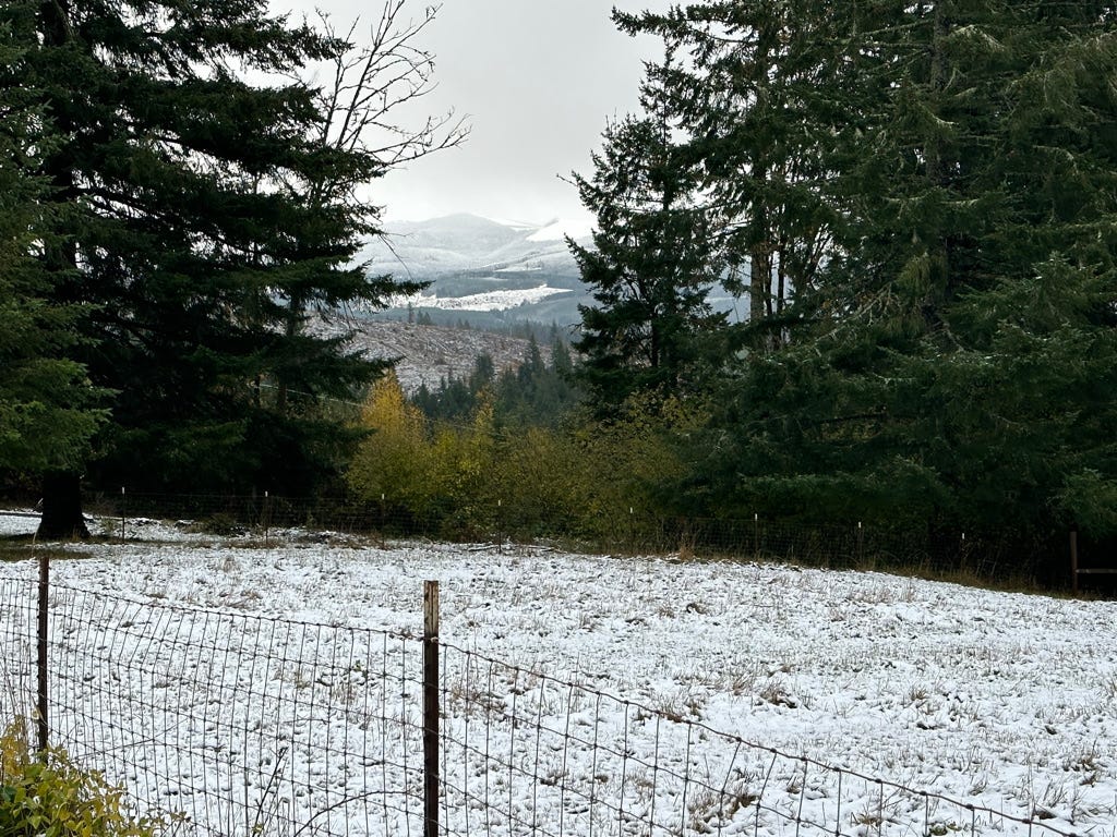 On my morning walk, I saw these icy mountains rising through the trees, and it was like I’d never seen them before.