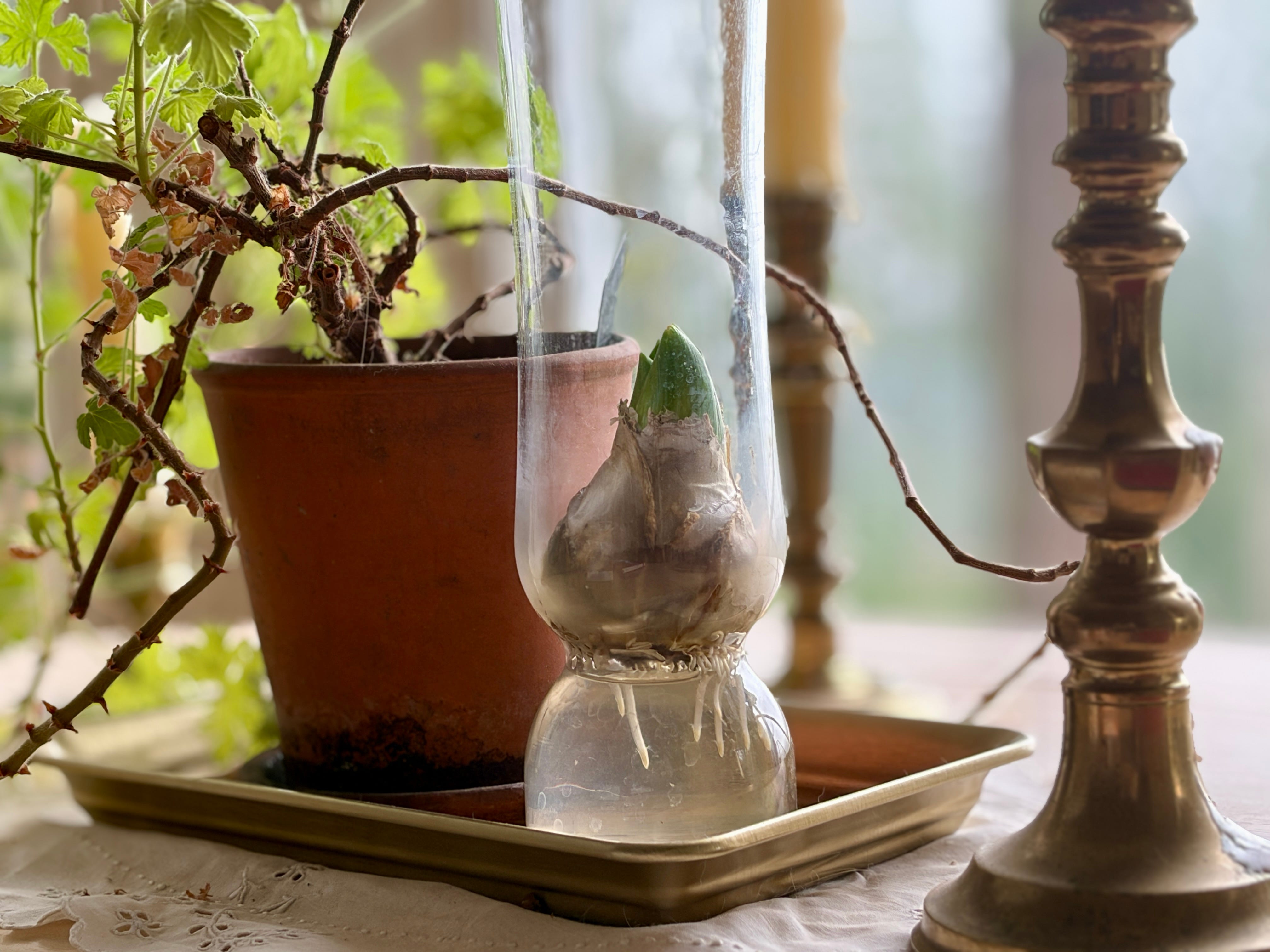 Or, I can practice being human. In the coming weeks, I’ll watch the bulbs carefully. I’ll hold the vase close to my eyes to make sure the water line is just right. I’ll notice the first white roots start to grow, give them sunshine, and then wait.